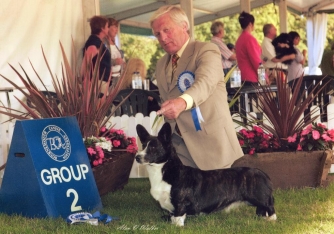 In order to strengthen my own breeding line Helen Jones let me bring from the US Am Ch Kennebec Jolly Roger This dog we both felt had a wonderful length of stride along with an effortless freedom of movement that was seldom seen in Cardigans. Jolly Roger won his U.K. champion in three consecutive shows shortly before Helen died. I know she will look down with great pride on the following generations and the trust we both placed in this dog, for it paid huge dividends not just for Joseter or Kennebec but the breed world wide, and will long live in the breeds history.