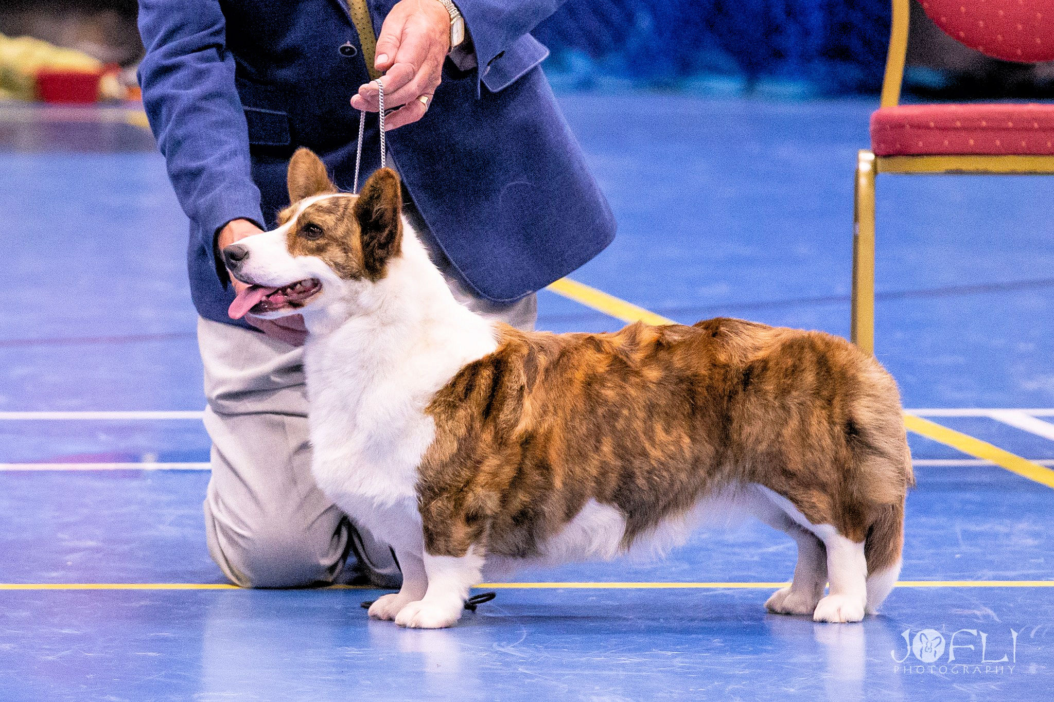 Mr Blobby won his first c..c and best of breed at eight months and his 51st and his last c.c. at the age of seven when he was awarded best in show for the fifth time, at the Cardigan Welsh Corgi Ass national speciality in 2019. Five in a row best of breed at Crufts, twenty nine group placements and res best in show at the Scottish Kennel Club he left the show world with a breed record befitting a Cardigan acknowledged by so many around the world. It was obvious from eight weeks this was some special dog and over his show career we felt him more than capable of taking on Cardigan world wide. Mr Blobby was showed twice at the American Cardigan national speciality, the first time as a young dog, he took winners dog, the second when in his prime, he managed to win a class. One thing was obvious in America, and noted by many older breeders, he stood out different to his competition. Mr Blobby was exhibited in 100 classes, he won 89 of them, placed second on ten occasions, and third out of three once. He leaves a show record that speaks for itself.