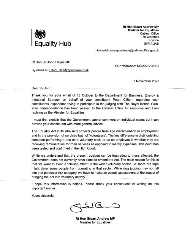 Letter received from the House of Commons