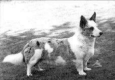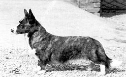 The foundation stone dog of the breed was Bob Llwyd whose name can be found on all but two pedigrees in the Cardigan Association Champions’ book during the period 1928-1939. This may be due to the fact that one of the two had parents unregistered and the pedigree of the other, Ch My Rockin Mawer(6) born in 1931 is half Pembroke, as he was sired by Ch Bowhit Pepper who later became honoured as a founding stud of the Pembroke. Mrs Honey's forty year interest in the breed came via her parents who owned Rockin Mawer, and she registered her first Cardigan Champion Dinah of Wilmorton (14) in 1934. Mrs Honey passed away in the early seventies having served the Association and breed continuously and awarding her last C.Cs at B/ham national in 1969.