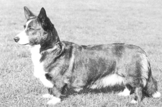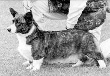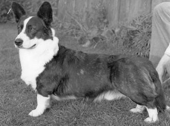 In 1980 we saw the Antoc & Bymil kennels each adding a litter sister Cardi to their established kennels. Lees Jet and Ch Lees Blue Rose of Bymil (163) were Pharoah granddaughters out of Lees Chevron who, together with her litter sister Lees Blue Emblem, became very influential broods. Jet combined well with Kentwood, Jezalin and Cardwyn dogs to produce a number of top Ch brindles whereas Rose was kept to blues and tris, with the tri Kerridas Ianto becoming the most influential sire during this period, not only to Rose but also to Beckrow Blue Sapphire. producing the well known Ch Beckrow Bue Cedar (189). To Rose he produced Ch Bymil Silver Lining (179) and Ch Bymil Bluebell of Gorthleck (201). The Deavitte and Gorthleck kennels also established their lines using the Lees sisters, Ianto, Beckrow & Doldrum/Wendac. Exports to Holland and Denmark were successful and their influence continues right up until the current time.