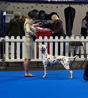 2. Whincup, Mrs D L & Whincup, Mr K Ch Tamilanda Continental Gold Cw21 20 mth Dalmatian another that took my eye on my first walk round the ring and she certainly did not disappoint in any way. I found her so feminine in head and expression. Ample neck excellent topline correct body shape, super front and rear quarters wonderful muscle tone and covered the ground with total ease and freedom.